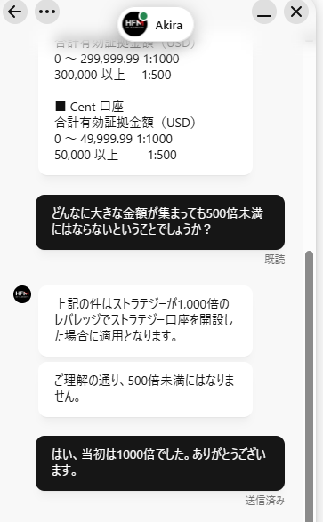 不安になり、HFMのサポート担当であるAkiraさんにチャットで直接伺ってみました。