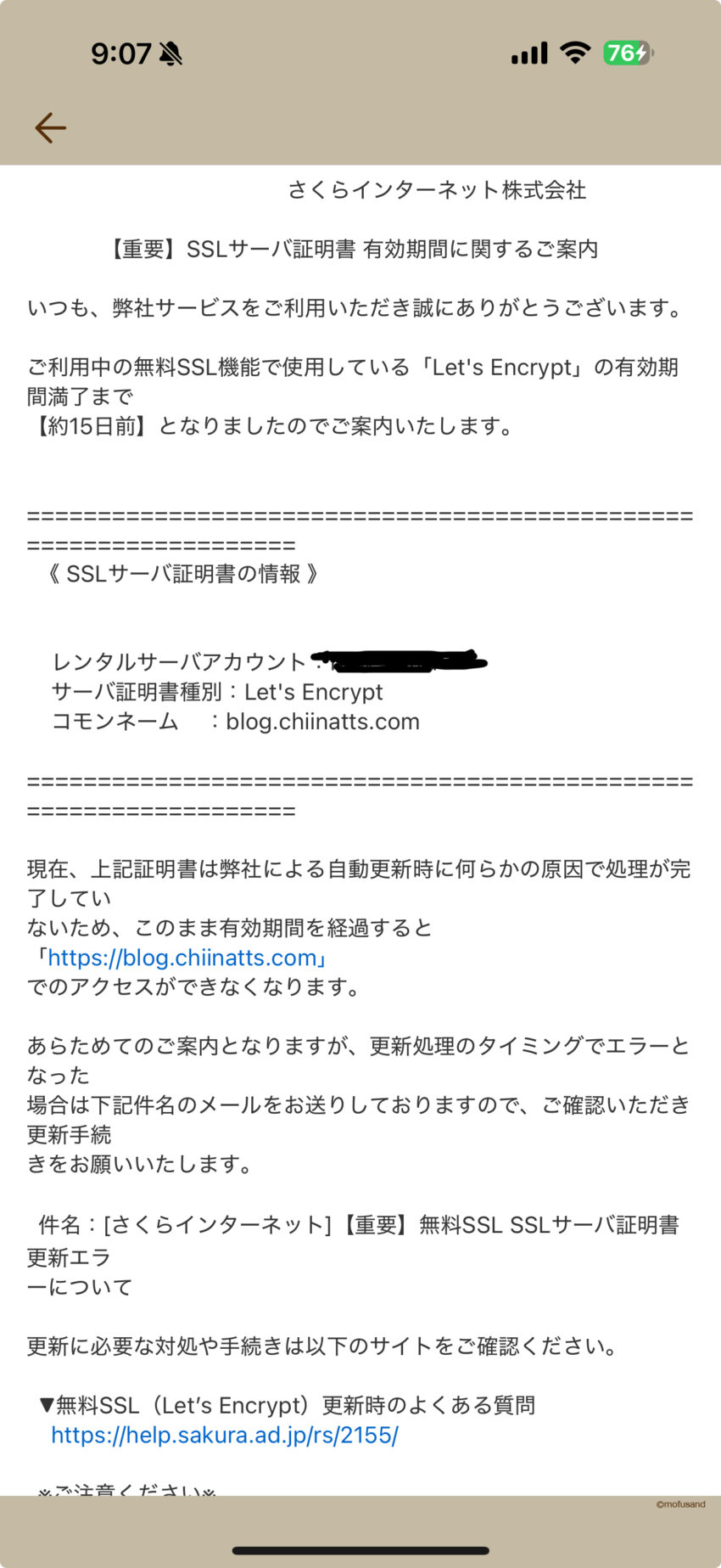 🔐SSL証明書が自動更新されず、ブログが一時アクセス不能に!再設定で復旧した体験談 本日朝、さくらインターネットから突然「【重要】SSLサーバ証明書 有効期間に関するご案内」というメールが届きました。内容を読んでみると、…